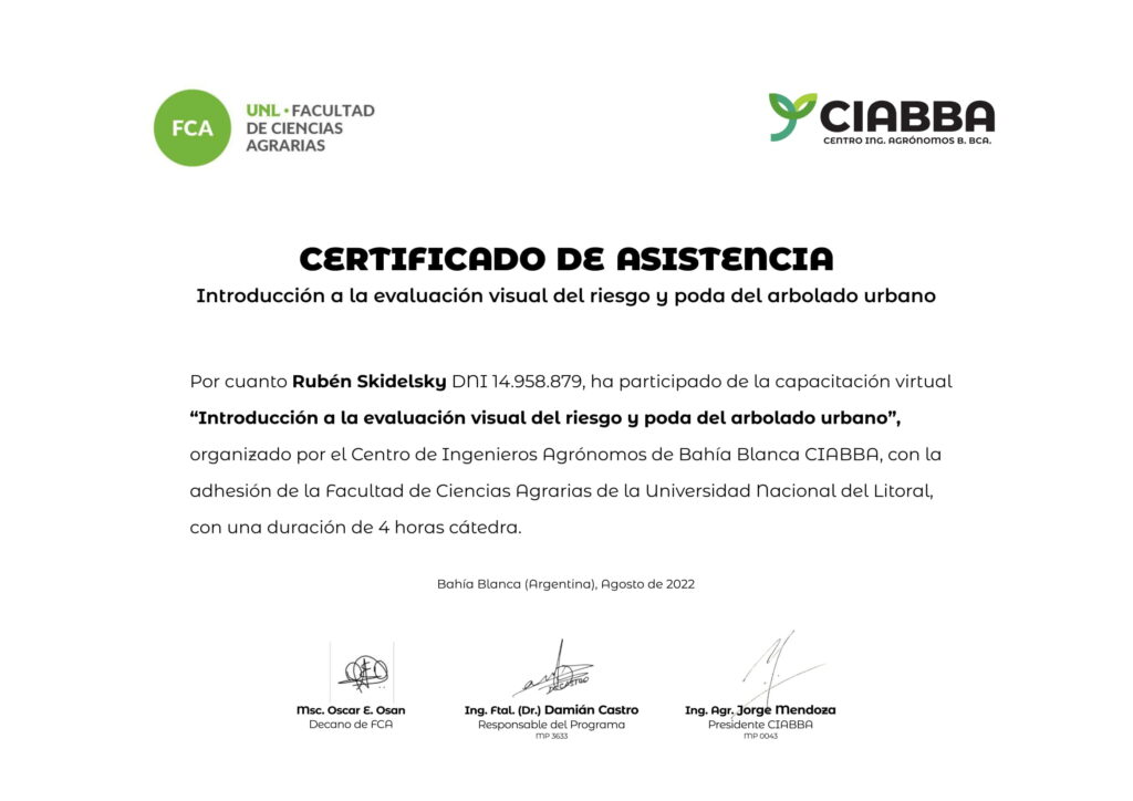 Miembro de la ANA – Asociación Civil Nacional de Arboricultura desde 2018